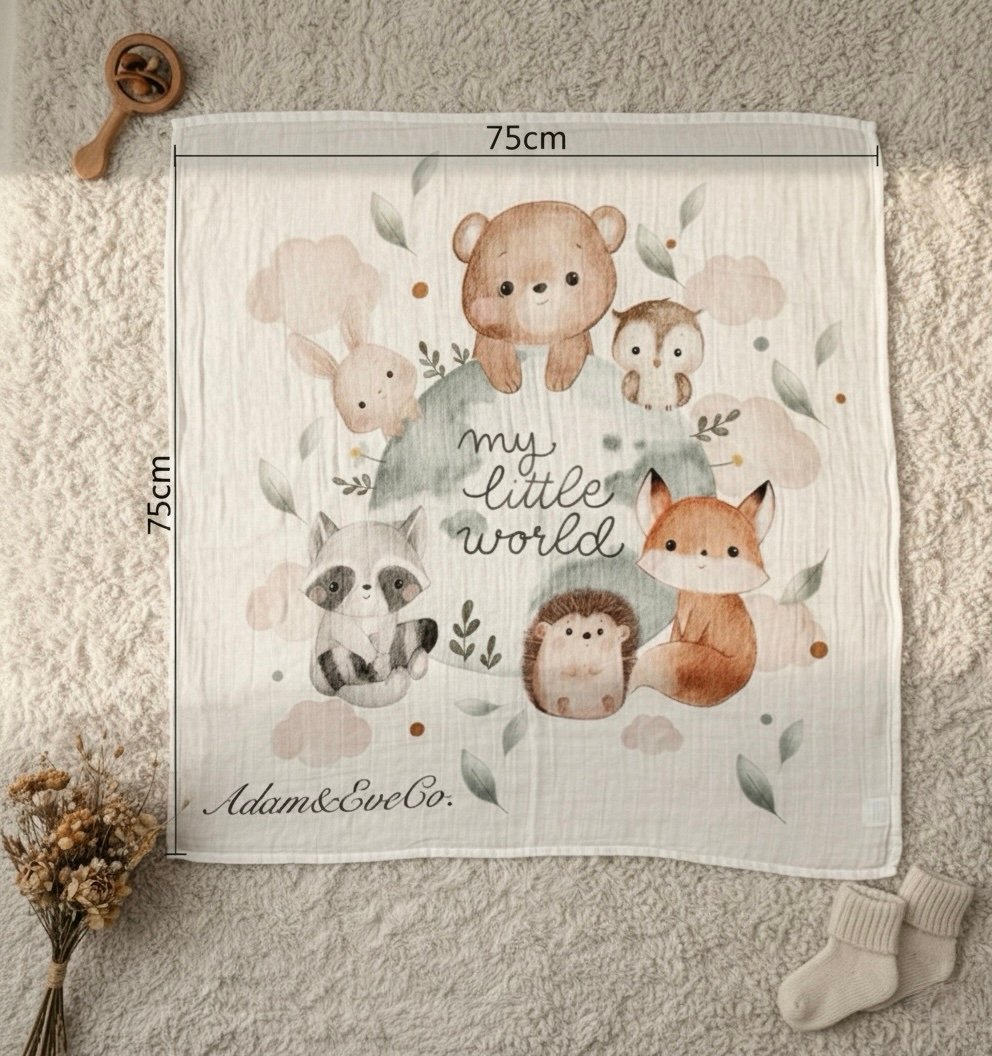 المقاس: 75×75 سم — مثالي لحديثي الولادة وحتى الأشهر الأولى